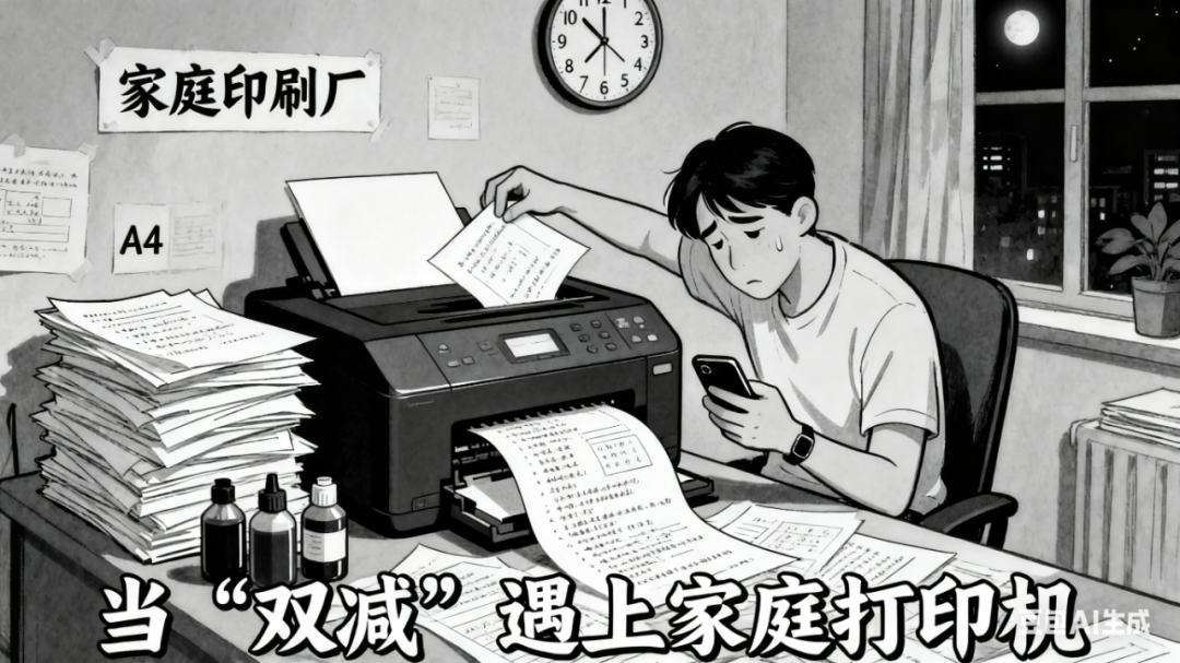 深夜朋友圈里,一張打印機工作的照片配文:“家庭印刷廠開工。”評論區瞬間被有同樣困擾的家長們占據。