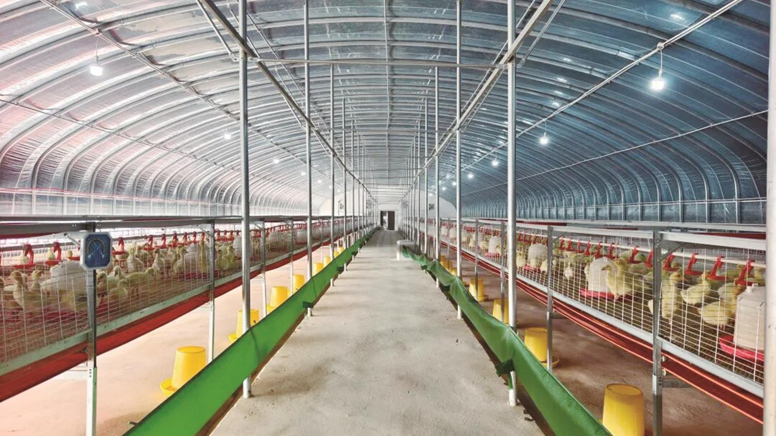 走進嶄新的養殖產業園,一棟棟標準化鵝舍整齊排列,通風系統、網床自動清糞機和配電加熱控制等現代化設備有序運轉。育雛棚內,首批入駐的700羽鵝苗健康狀況良好,工作人員正嚴格按照規程進行喂食與管護。這里不僅孕育著產業發展的希望,也給周邊村民帶來在家門口就業增收的新機遇。