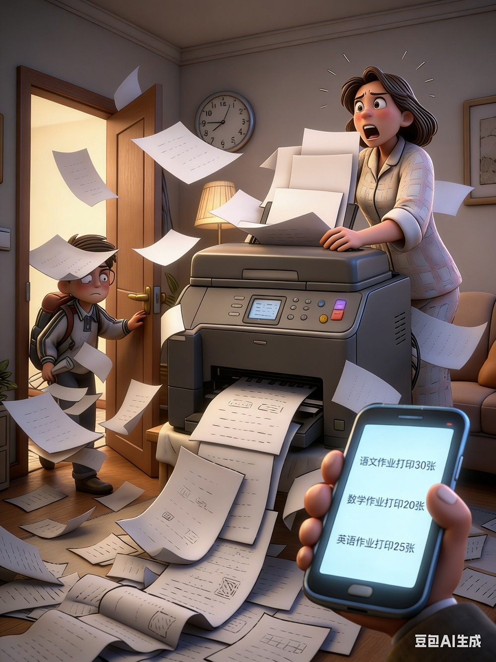 如今,打印微信作業(yè)成了不少家長的一大負擔。有媒體報道,盡管教育部門三令五申要求減輕中小學生課業(yè)負擔,并多次開展專項整治,但仍有一些地方的中小學“明減暗不減”,頻繁將“成頁不成冊”的電子作業(yè)或試卷照片發(fā)到微信群讓家長打印,多的時候一晚上得打印幾十頁,令人抓狂。