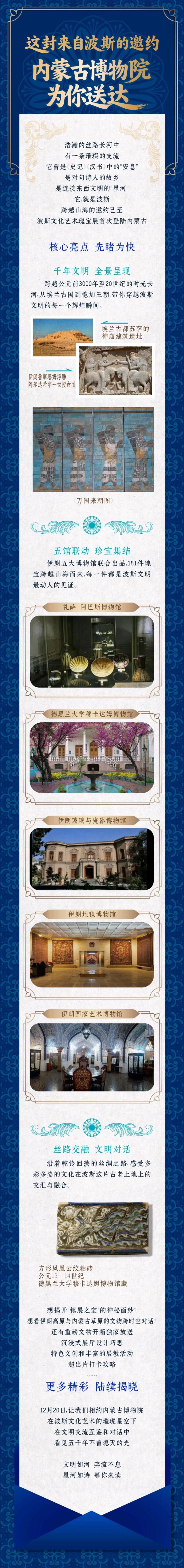 記者從內蒙古博物院獲悉,歲末年初,內蒙古博物院好戲連臺、大展繽紛。12月20日,波斯文化藝術瑰寶展將啟幕,151件綺麗瑰寶跨越山海來到內蒙古,每一件都是波斯文明最動人的見證。