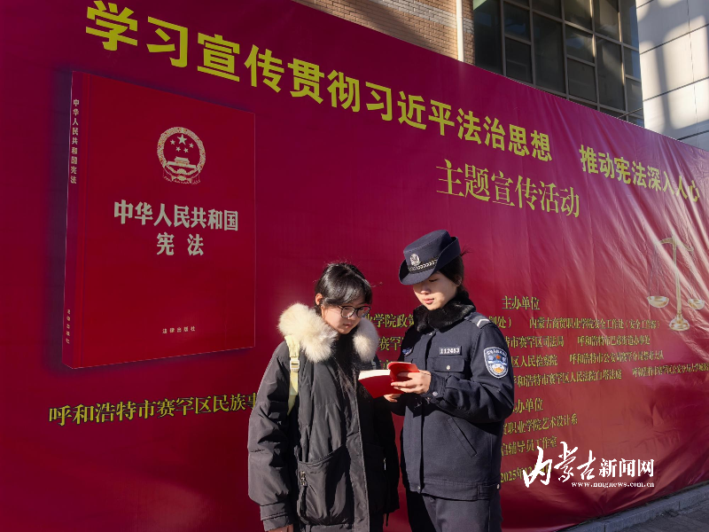 本網(wǎng)訊(草原云·內(nèi)蒙古新聞網(wǎng)記者 劉睿睿)12月4日是第十二個國家憲法日。當(dāng)日,呼和浩特市公安局賽罕區(qū)分局刑事偵查大隊聯(lián)合大學(xué)城派出所民輔警,走進內(nèi)蒙古商貿(mào)職業(yè)學(xué)院,攜手該校藝術(shù)設(shè)計系及相關(guān)單位開展“藝啟弘揚憲法精神,建設(shè)法治校園,護航青年成長”主題宣傳活動,以案例解讀、互動模擬等“硬核”形式,為師生送上“法治大禮包”。