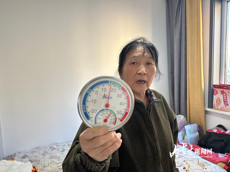 隨后,記者又來到居民張俊英家中,她告訴記者,去年入住后,就有家中溫度不高,窗戶密封不嚴等問題,今年溫度實在不熱,“我家樓上、樓下都沒有居民入住,次臥室的溫度僅有17度。”